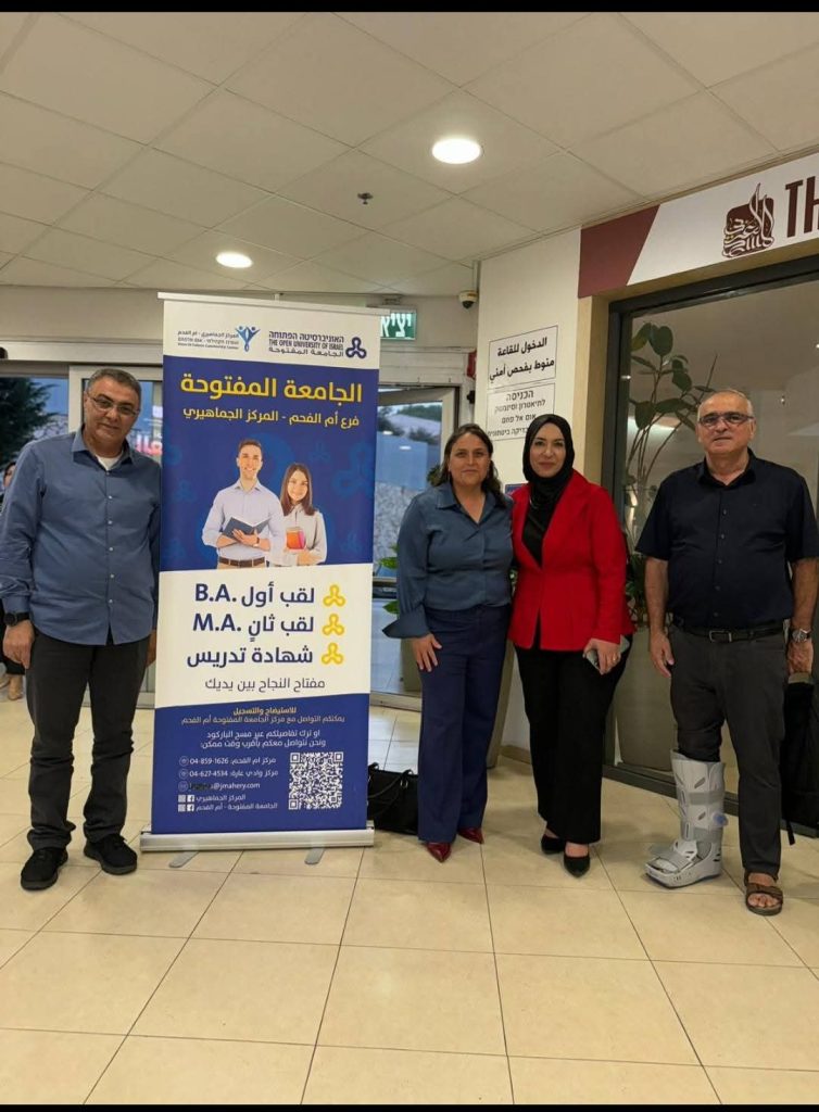في أمسية أكاديمية مميزة، احتفلت الجامعة المفتوحة – فرع الناصرة ووادي عارة، مساء يوم الخميس الموافق 6.11.2025، وبالتعاون مع المركز الجماهيري – بلدية أم الفحم ومجلس طلعة عارة المحلي، بافتتاح مجموعة حصرية لموظفات وموظفي البلديات والسلطات المحلية، ضمن برنامج اللقب الثاني في “الحكم المحلي والسياسات العامة”، وذلك في المركز الجماهيري – أم الفحم مع انطلاق العام الدراسي الأكاديمي الجديد.