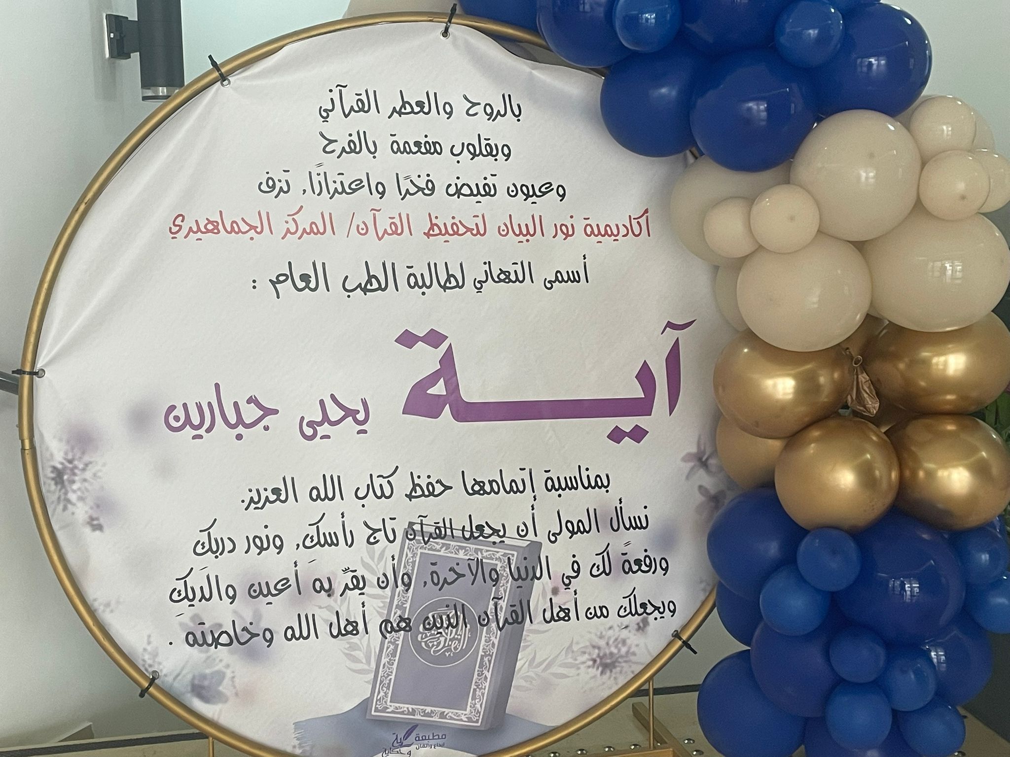 “كل لحظةٍ قضيتها بين آيات الله كانت شفاءً، وكل آيةٍ حفظتها كانت وعدًا بأن الله لا يضيع من تعب في سبيله… الحمد لله الذي اختارني لحمل كتابه، فكان النور الذي أضاء طريقي في الطب وفي الحياة.”