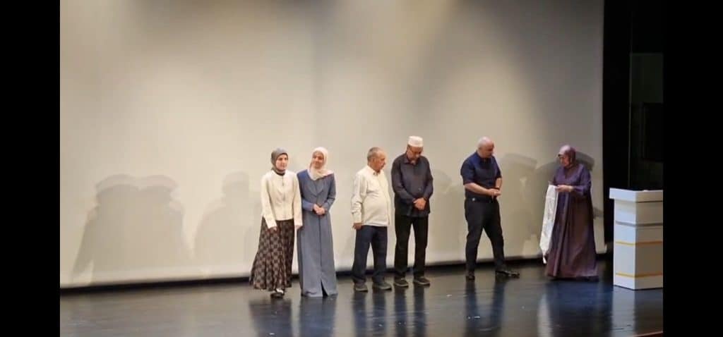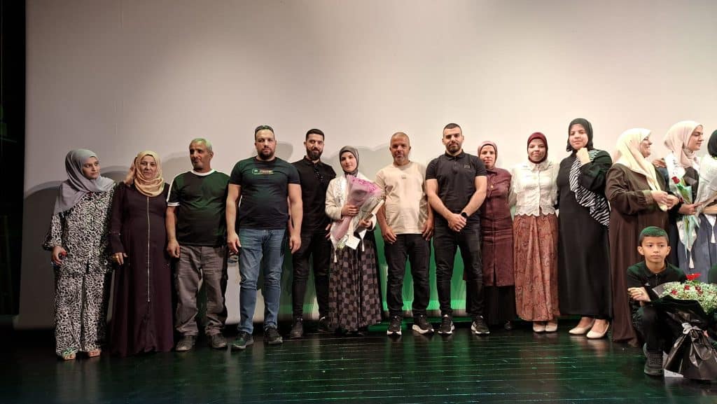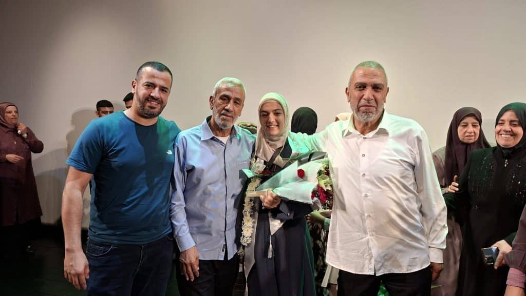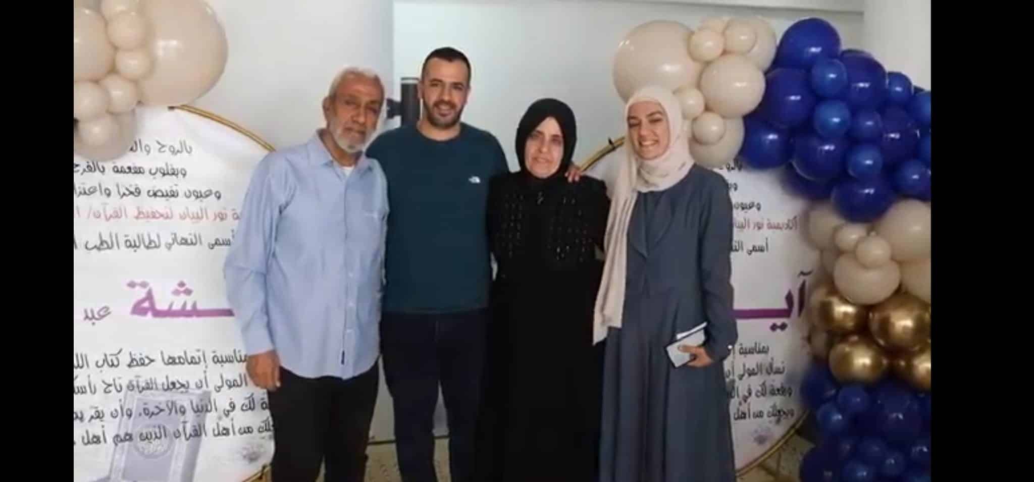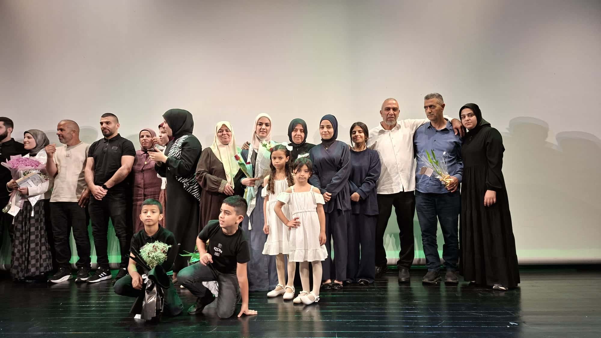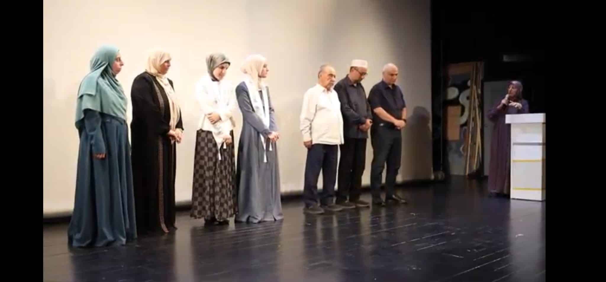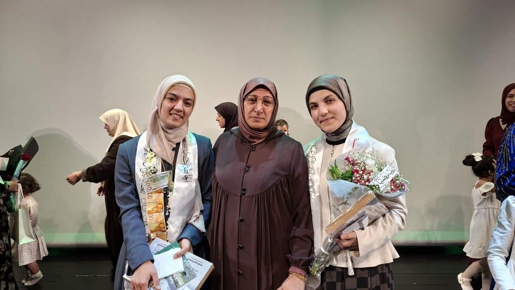 ثم جاءت لحظة الفخر الكبرى، حين دعت العريفة كلاً من السيد محمد صالح إغبارية، والسيد توفيق الحج عوض، والدكتور محمد أمارة، والمربية هيام محاميد، والمربية حنين إغبارية، ليعتلوا المنصة ويضعوا وشاح الحافظة على جبين كل من آية وعائشة، في لحظةٍ رمزيةٍ خالدةٍ أعلنوا خلالها إتمام الحفظ والتثبيت.