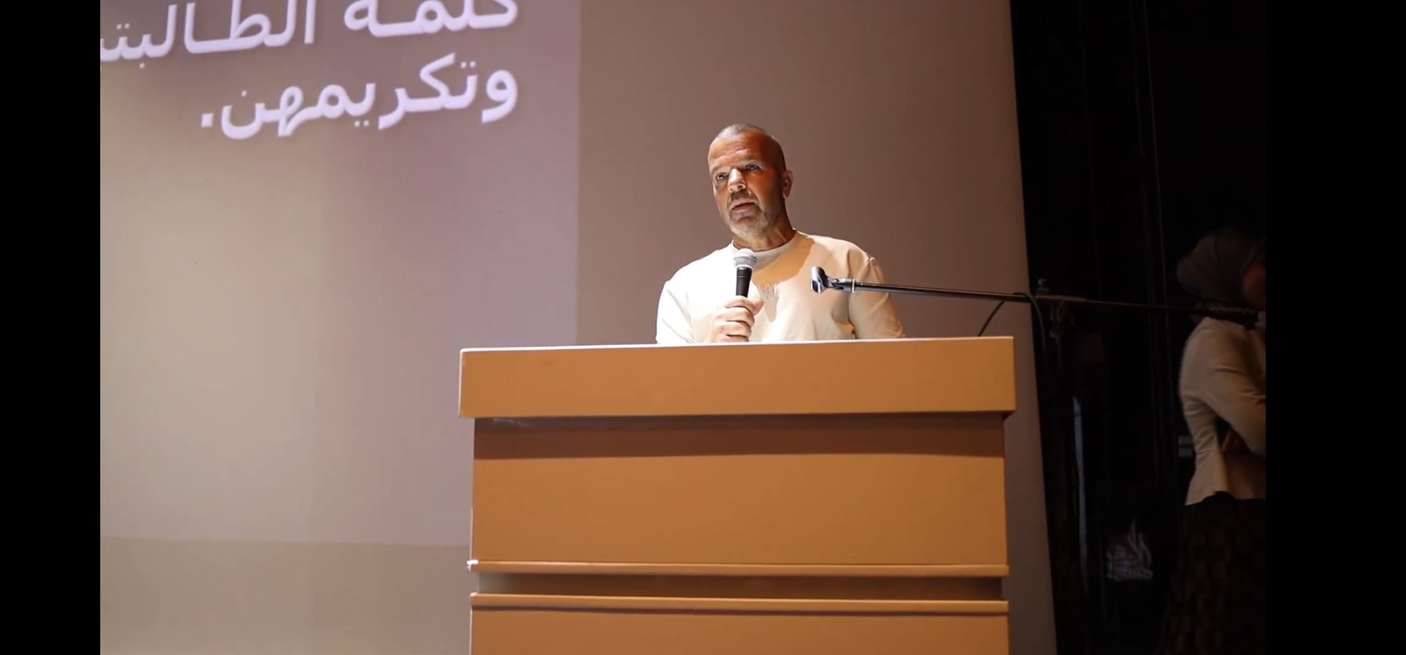 وفي فقرة مؤثرة، ألقت الطالبة هيا رمزي كلمة باسم طلاب الأكاديمية عبّرت فيها عن امتنانها وشكرها قائلةً: