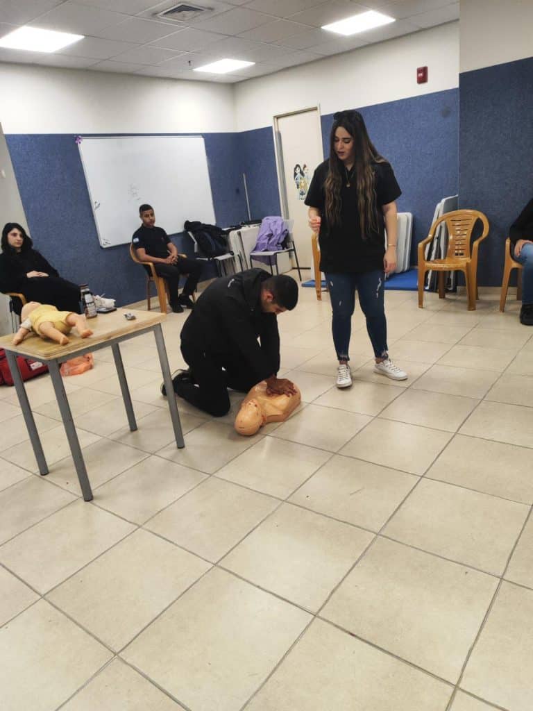 وامتدت الدورة على مدار 60 ساعة تدريبية مكثفة، توزعت على فترة ثلاثة أشهر، وشارك فيها 30 طالبًا وطالبة من المدرسة الثانوية الأهلية. وقد قُدّمت الدورة بشكل مجاني للطلاب، بإشراف مركز الإنقاذ (הצלת חיים)، واختُتمت بإجراء امتحان شامل لكافة المشاركين، اجتازه جميع الطلاب بنجاح، وحصلوا في أعقابه على بطاقة مُقدِّم إسعاف أولي معتمد.